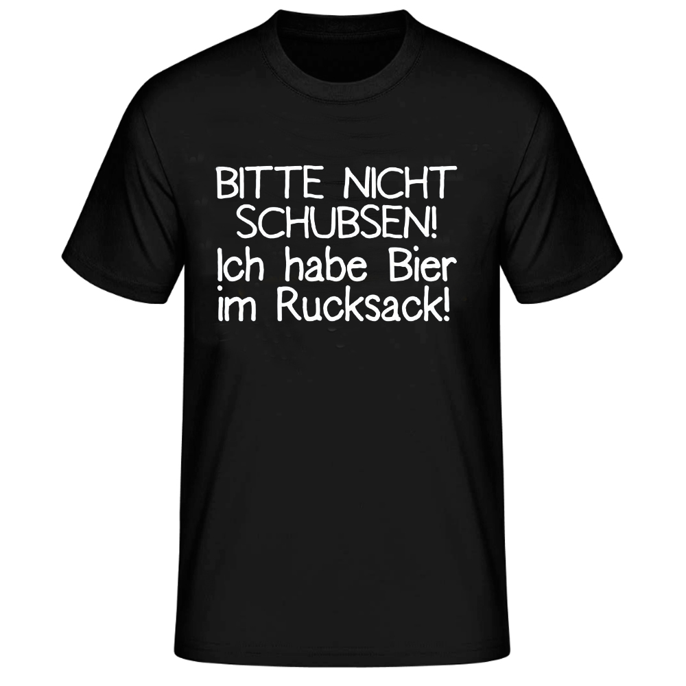 "Bitte nicht schubsen! Ich habe Bier im Rucksack!" T-Shirt schwarz für Herren
